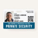 Personalised security ID badge with fully customisable text. This editable template includes your ID photo, name, job title, ID number, company name, issue date, expiration date, logo and a scannable QR code. All the text can be customised or deleted, so you can tailor it to suit your business. A versatile design that suits many different workplaces and professions, including private security, security guard, security officer, store security, personal bodyguard, official doorman, retail worker, medical staff and more. Printed colours: teal, blue-green, black and white. Shop the collection for more badges and tags for sale online, designed for the security service industry.