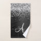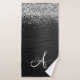 Custom Silver Glitter Black Sparkle Monogram Bath Towel Set