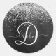 Custom Silver Glitter Black Sparkle Monogram Classic Round Sticker