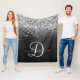 Custom Silver Glitter Black Sparkle Monogram Fleece Blanket