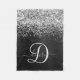 Custom Silver Glitter Black Sparkle Monogram Fleece Blanket