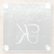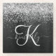 Custom Silver Glitter Black Sparkle Monogram Glass Coaster