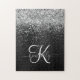 Custom Silver Glitter Black Sparkle Monogram Jigsaw Puzzle