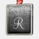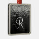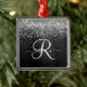 Easily personalise this trendy elegant metal ornament design featuring pretty silver sparkling glitter on a black brushed metallic background.
