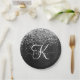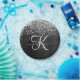 Custom Silver Glitter Black Sparkle Monogram Paper Plate