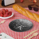 Easily personalise this trendy elegant paper plate design featuring pretty silver sparkling glitter on a black brushed metallic background.