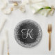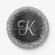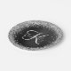 Custom Silver Glitter Black Sparkle Monogram Paper Plate