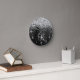 Easily personalize this trendy elegant round clock design featuring pretty silver sparkling glitter on a black brushed metallic background.