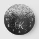 Custom Silver Glitter Black Sparkle Monogram Round Clock