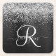 Custom Silver Glitter Black Sparkle Monogram Square Paper Coaster