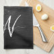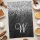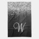 Custom Silver Glitter Black Sparkle Monogram Tea Towel
