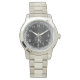 Easily personalise this trendy elegant watch design featuring pretty silver sparkling glitter on a black brushed metallic background.