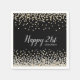 Add your own special touch to this elegant custom birthday party napkin design featuring sparkly gold and silver confetti over a black background, modern script typography with the words "Happy 21st" and the birthday girl's name.