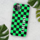 Fun funky black and bright lime green coloured racing flags check pattern design. With room to personalise or customise with a name of your choice in white and black colours. Funky, elegant, stylish, and eclectic design for the fancy artistic fashionista, the artsy fashion diva, popular hip trendsetter, vintage retro art style, and abstract digital geometric motif lover who wants to protect their phone from dust and dirt, wear and tear. This design is available for Apple iPhone 6, 7, and 8 Plus, 10 or X, XR, XS, 11, 12, 13 Mini, 14, 15 Plus, and Pro Max cellphone cases. Show off your style, look fashionable, and feel stylish with a unique design on a mobile device accessory of your choice.