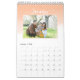 Crafted with a stylish script font and adorned with elegant peach watercolor accents, this calendar offers a unique canvas for your cherished family pictures.