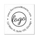 Custom business rubber stamp featuring a minimalist design with your logo along with your business information or other text along the top and bottom. A basic and plain design that still comes across as professional. This simple rubber stamp is great for branding products, bags, boxes, packaging orders and more.