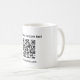 Custom white minimalist qr code simple text mug . Add and personalize with your own qr code, logo, text, message, informations, url, website adress, business brand, company name. Simple white black mug personalized for gift , marketing, promotion, coffee, restaurant, work, party’s, employees gift, boss, students, fathers, corporate event trade show, christmas customers gift, business or personal use.