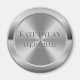 Custom engraved silver badge. The metal and the engrave are simulated. You can replace the name and date text.