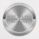 Custom engraved silver badge. The metal and the engrave are simulated. You can replace the name and date text.