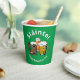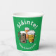 Patriotic Custom Sláinte St Patricks Day Paper Cups, showing a cartoon drawing of three beers and Sláinte! (Health) in curved text across the top. There is customizable text at the bottom, which reads HAPPY ST PATRICK'S DAY. These St Patrick's Day paper cups are an ideal addition to your Paddy-themed party supplies for St Paddy's Day private parties, public celebrations, beer festivals, etc. Matching items are available in the ST PATRICK'S DAY and CHEERS & BEERS Collections by Berean Designs. Choose from a wide selection of St Patrick's Day designs on cards, invitiations, clothing, home decor and gifts.