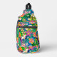 This custom sling bag is shown in a colourful tropical print, buy as shown or add to it.
