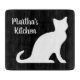 Custom small glass cutting board with cute cat logo. Personalised glass cutting board with kitty and custom text, funny quote, pet name or monogram. Cute gift idea for kitchen or restaurant. Unique kitchen gifts for women; mum, aunt, sister, friends, wife, bride, co worker, colleague, boss, daughter, cat lover, cat person, cat owner, crazy cat lady, chef, cook etc. Presents for Birthday, Mother's Day, Christmas, retirement and more. Small and large size available. Black and white colours. Cooking and kitchen supplies for him or her.