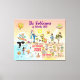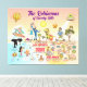 Bright and colourful scene offers a spectacular view of Southern California - wacky characters frolic on the beach and desert of SoCal showcasing Los Angeles, Orange County, San Diego, Santa Barbara, Riverside, Palm Springs, El Centro, Anza Borrego and Joshua Tree parks as well as the border cities of Tijuana, Tecate and Mexicali. This charming scene has it all – a surfer hangs ten while a killer whale leaps out of the water, zoo animals greet the tourists, wine lovers make a toast as a T-Rex roars a challenge and a hiker is noticed by a UFO and much more…