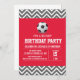 A custom sport theme invitation for boys birthday party featuring soccer ball. The product comes with chevron overlays in white custom background. You can edit the background colour to your preference. Play around by clicking Edit to change the background of the chevron.
