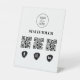 Help customers and clients connect with your business online using this customisable social media QR code table sign. Featuring scannable QR codes for Facebook, Instagram, and LinkedIn, this sign makes it easy for guests to follow and engage with your brand. Add your own logo and personalise your QR codes to direct visitors straight to your social pages. Perfect for cafes, salons, boutiques, events, or office reception areas, this durable and stylish sign ensures your online presence is just a scan away.