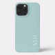Contemporary light mint green coloured monogram cellphone case. With room to customise with a name monogram, or initials of your choice. Beautiful, modern, and cool cover for the trend-savvy and art-loving hip trendsetter, artsy motif lover who wants to protect their phone from dust and dirt, wear and tear. This design is available in Apple iPhone 6, 7, 8, 10 or X, XR, XS, 11, 12, 13 Mini, 14, 15 Plus, and Pro Max cellphone cases. Show off your style, look fashionable trendy, and feel stylish with a unique design on a mobile device accessory of your choice.