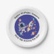 Elevate your child’s birthday celebration with our custom space-themed paper plates. Perfect for aspiring astronauts, this durable paper plate features vibrant illustrations of an astronaut, planets, and a rocket ship. Personalise it with your child’s name – ‘Happy Birthday Grayson’ – and commemorate their ‘First Trip Around The Sun.’ Ideal for space-themed parties, these plates add a unique touch to your event while ensuring easy cleanup