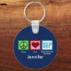 Cute personalised speech therapist keychain gift. Peace love and speech language pathology on dark blue background with your SLP's name. A great speech language pathologist gift.