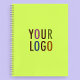 Personalise this custom spiral bound notebook with your own business logo and custom text. Custom logo spiral notebooks can advertise your business as promotional items or office gifts. The spiral binding colour is available in black, white, grey, red, blue, and green and you can customise the cover background colour to match your corporate colours. The paper inside this notebook can be printed with ruled lines, graph lines, lines for recipes, or with no lines with a border. Available in letter size, square shaped, and heart shaped notebooks. No minimum order quantity and no setup fee.