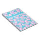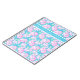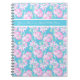 A pretty and feminine spiral notebook, with a pattern of bright pink roses on a sky blue background. and band of plain sky blue for your personalisation.