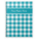 A customisable spiral Notebook or Journal, with a teal and white check gingham pattern.