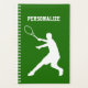 Custom spiral planner for tennis player or coach. Personalised weekly / monthly agenda book. Make your own cover design with silhouette of a player. Fun Birthday gift idea for friends, family, player, teen, teenager, boy, girl, coach, mum, dad, coworker, boss, colleague, school teacher, trainer, fan, company manager etc. Office presents for him or her. Sports theme design. Upload your own image optionally. Green or custom colour background. Great for planning tournaments and club events. Suitable for professionals and amateurs.