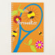 Custom spiral planner with tennis racket design. Personalised weekly / monthly agenda book. Make your own cover design. Elegant gift idea for friends, family, coworker, boss, colleague, school teacher, player, girl, coach, mum, trainer, fan, company manager etc. Office presents for him or her. Sports design. Double sided design. Upload your own image on the front and back optionally. Stylish handlettered script typography template. Sporty design with racquet, spring flowers and cute bee tennis balls.