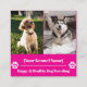 This is a sleek, square business card template for a dog kennel, boarding, or pet-sitting service. The front features a two-photo collage, ideal for showcasing happy, healthy dogs. Below the photos, there's a space for your kennel's name and a tagline. The back is a simple, clean layout with all the essential contact details—your name, phone number, website, email, and social media handles. A cute paw print with a heart inside adds a charming touch. This modern and unique square design will help your business stand out.