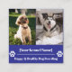 This is a sleek, square business card template for a dog kennel, boarding, or pet-sitting service. The front features a two-photo collage, ideal for showcasing happy, healthy dogs. Below the photos, there's a space for your kennel's name and a tagline. The back is a simple, clean layout with all the essential contact details—your name, phone number, website, email, and social media handles. A cute paw print with a heart inside adds a charming touch. This modern and unique square design will help your business stand out.