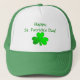 Custom St. Patrick Day green hat with shamrock and customisable text