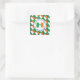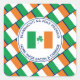 Home-made HOME-MADE BACON & CABBAGE square sticker, with the flag of IRELAND in a tiled pattern and at the centre. The background colour is blue. There is CUSTOMIZABLE text around the centre that says Beannachtí na Feile Pádraig (St Patrick's Day greetings) and HOME-MADE BACON & CABBAGE, which you can personalise with your own contents or use for different items. Ideal for IRISH food items or gifts, especially for ST PATRICK'S DAY takeaway pub grub. Matching items available in the ST PATRICK'S DAY Collection.