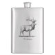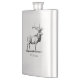 Handsome stainless steel flask, with graphics of a antlered large stag deer. Personalise the grey text, to suit your needs. Great personalised gift idea for groomsmen, hunters, or anyone.