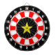 Custom star image on black, red and white Dart Board.