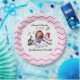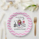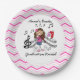 A stick figure girl violin player in a pink dress on pink chevron design paper plates. Customer request