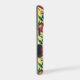 Joyful iPhone Case with fruity summer vibe - Watercolor Strawberry and Blueberry Pattern on a yellow Background - is an ai generated design and shows a seamless repeating fruity pattern with red Strawberries, blue Blueberries and green Leaves.