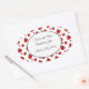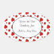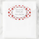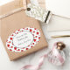 A custom canning or soap label with script letters and a pattern of wild strawberries behind a simple gold medallion.