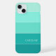 Contemporary light seafoam, pastel aqua turquoise, jade green, and teal blue coloured stripes pattern. With room to customise or personalise with a name, monogram, or initials of your choice. Beautiful, modern, and cool cover for the trend-savvy and art-loving hip trendsetter, artsy motif lover who wants to protect their phone from dust and dirt, wear and tear. This design is available in Apple iPhone 6, 7, and 8 Plus, 10 or X, XR, XS, 11, 12, 13 Mini, 14 Plus, and Pro Max cellphone cases. Show off your style, look fashionable trendy, and feel stylish with a unique design on a mobile device accessory of your choice.