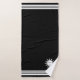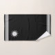 Three stripes on black and custom white sun and moon image. Elegant modern towel set.