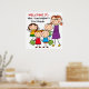 Welcome your students to class with this colourful, bright, fun stick figure kids and female teacher classroom poster featuring several kids and the teacher with areas you can easily customise with your name and class whether it's kindergarten, first grade, second, third, etc.!