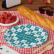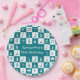 A great gift for any musician or music lover, this cool design features a modern and stylish teal and white check squares pattern with various musical notes and musical instruments in alternating colours. It includes pianos, trumpets, drums and saxophones with music notes and treble clefs.